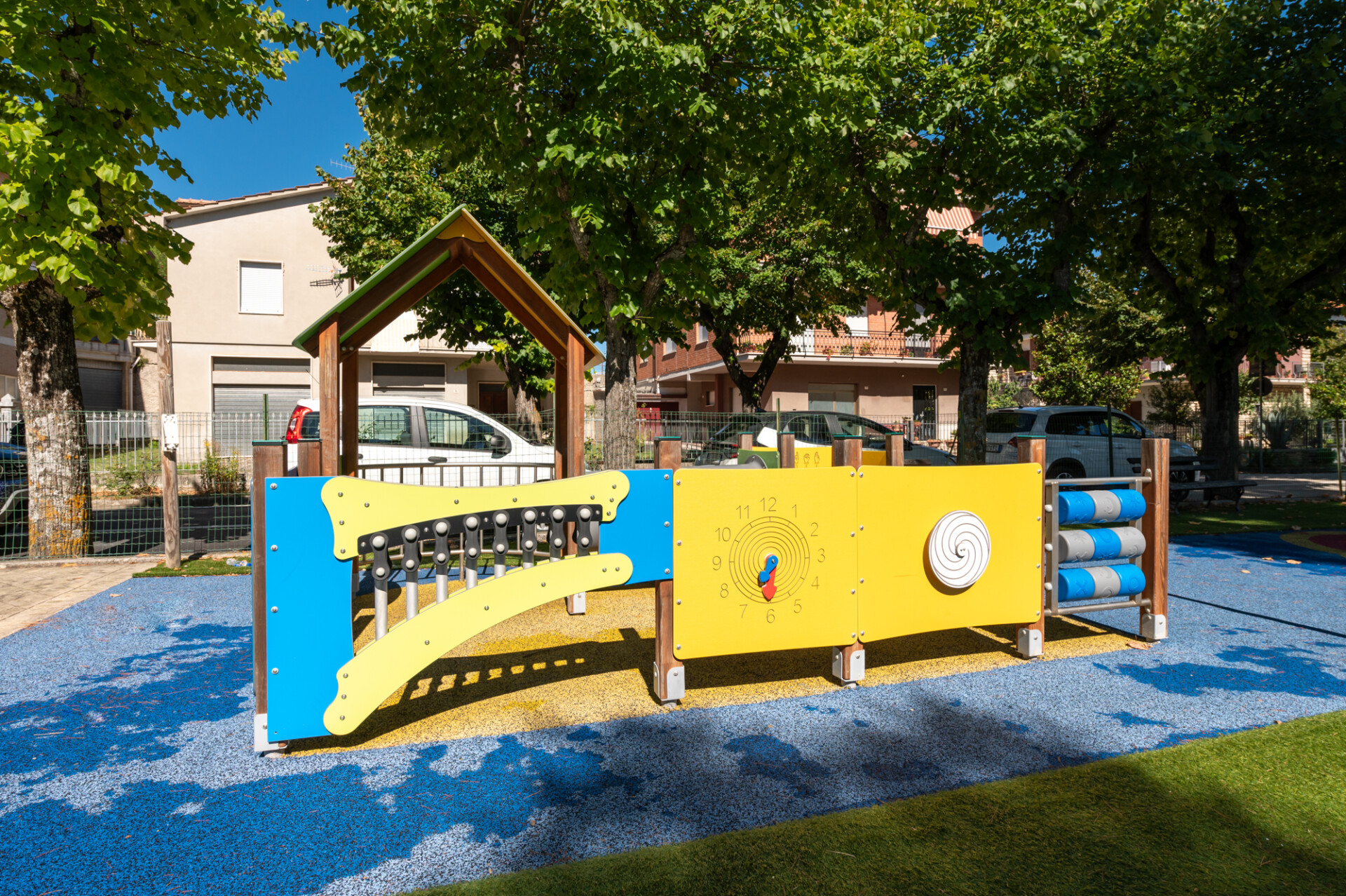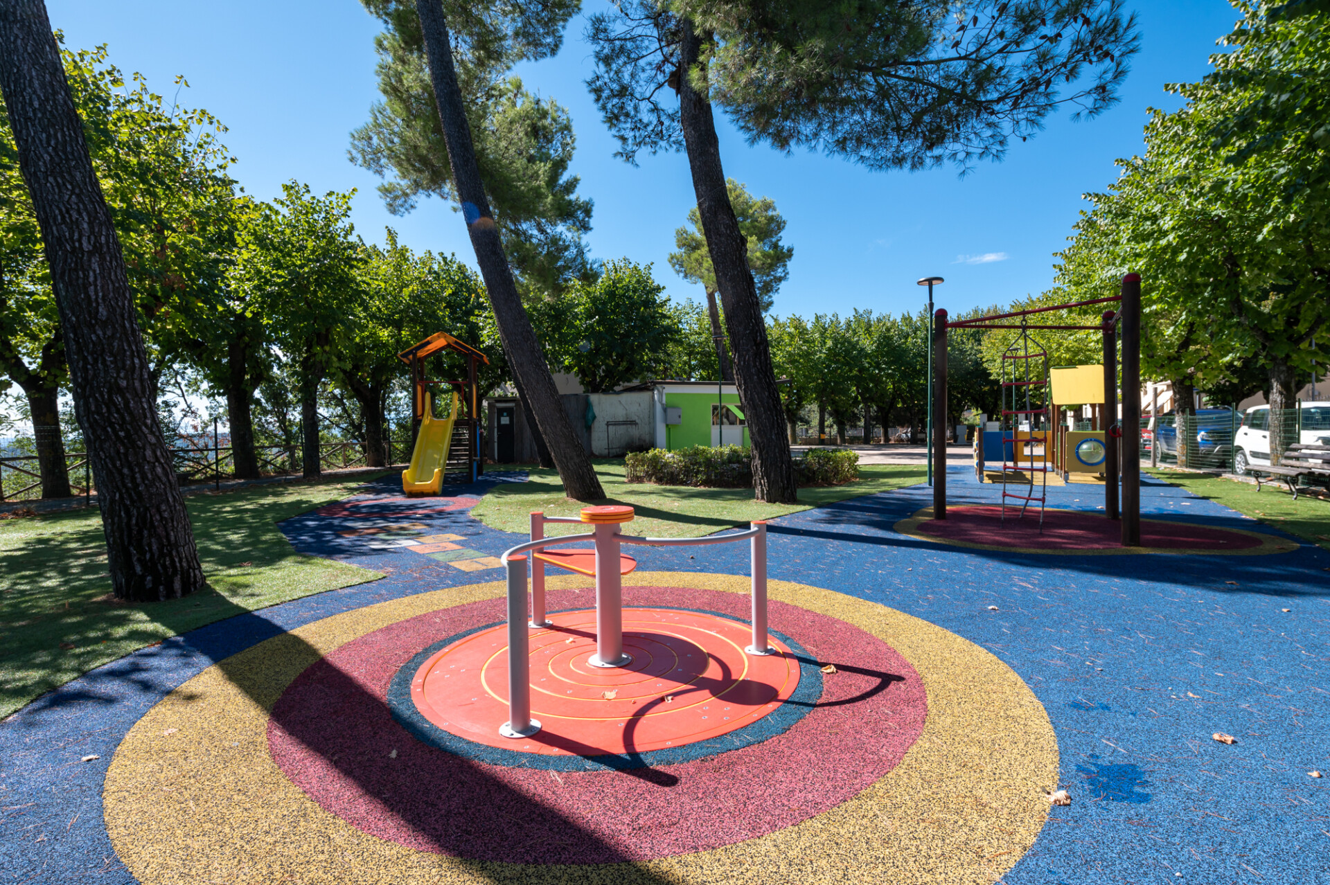 Lo spazio è pensato per superare le barriere architettoniche e favorire l’interazione, la socializzazione e lo sviluppo di competenze diverse, anche grazie all’introduzione di giochi inclusivi, come la giostra girevole, e di un gioco con elementi tattili.