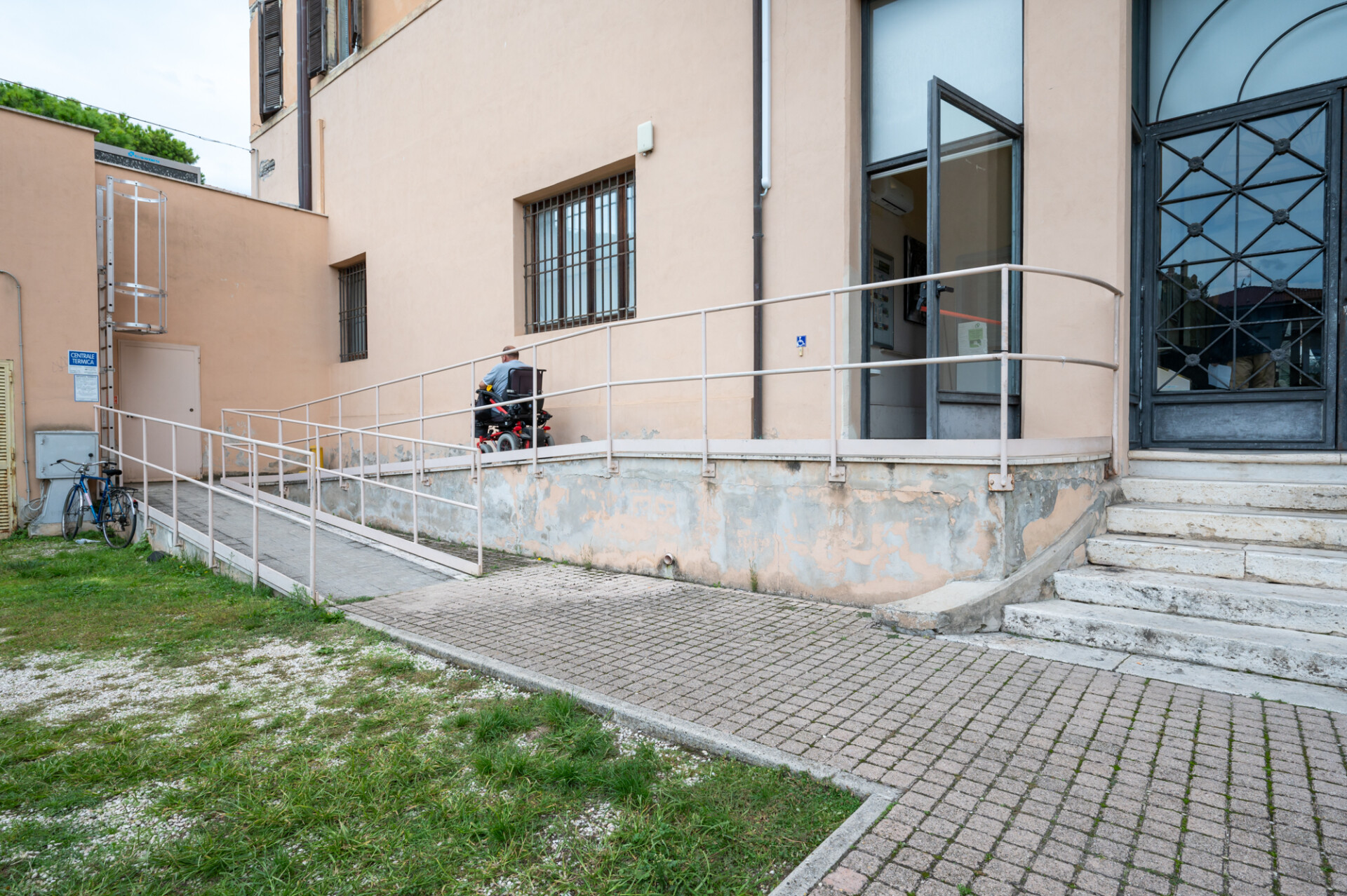 Al Palazzo comunale del Comune di Grottammare si ha accesso da un cortile e grazie a una rampa che ne garantisce l’accessibilità.
