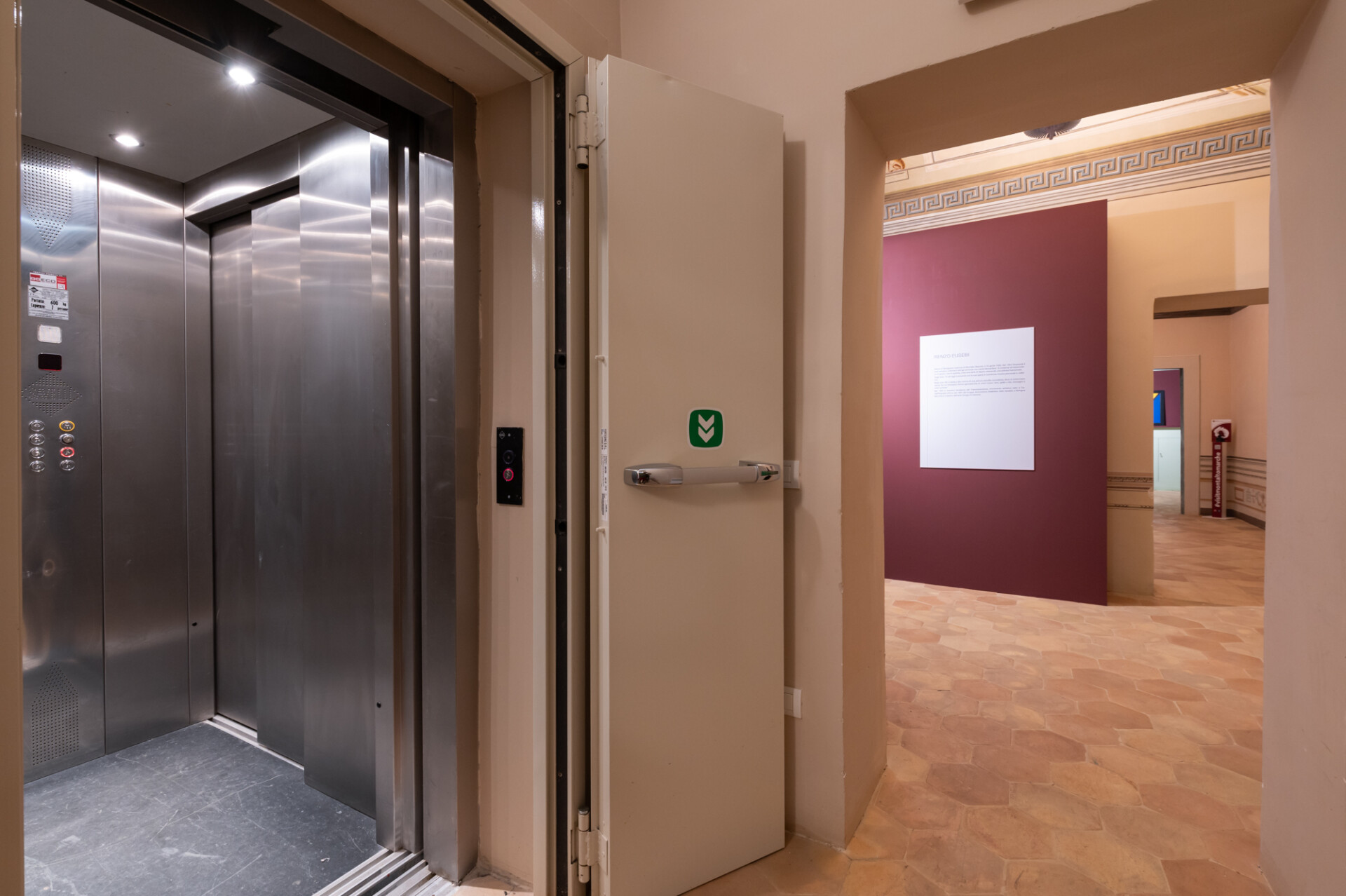 Il Palazzo si sviluppa su più piani e il piano nobile, al momento destinato alle esposizioni artistiche, è reso accessibile da un ascensore raggiungibile dal cortile interno al Palazzo.