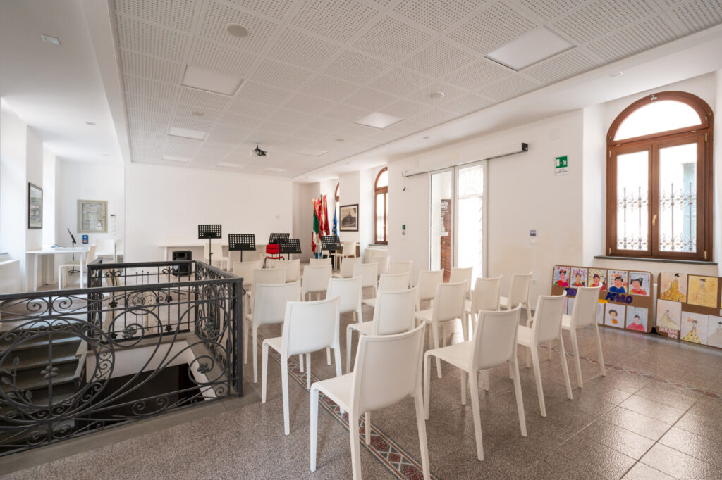 Affacciata su Piazza Garibaldi, quindi nei pressi della Chiesa di San Giacomo Maggiore e del Bar Massignano Caffè, la sala consiliare rappresenta ormai un centro polifunzionale di animazione e aggregazione molto importante per il borgo.